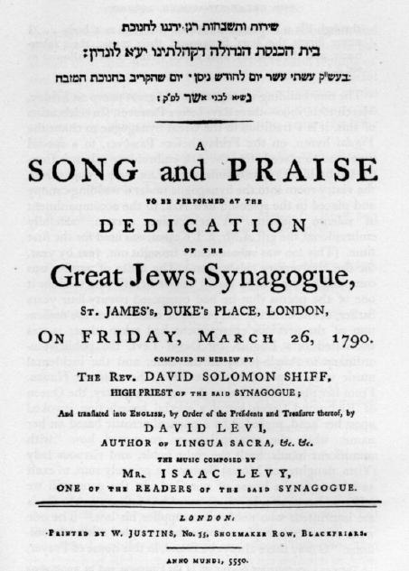 Service at the Rededication of the Great Synagogue, 1790 (Title Page)