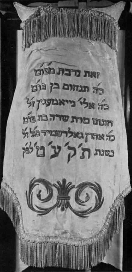 Subsequent work on the Synagogue did not entail any fresh financial strain like that of 1790. Among the pillars of the community at the time was Daniel Eliason (known in the Synagogue as Tanhum ben Elijah Neumegen), a connexion and partner of the Goldsmids and with them a patron of Braham's. (A scroll of the law presented by him in 1818 with full appurtenances, including a pointer set with diamonds, is still in the possession of the Congregation.) When he died in 1824, he left some thousands of pounds to be funded in order to keep the fabric in a good state of decoration and repair in perpetuity.