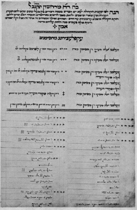 Opening Page of Synagogue Membership Roll, 1791