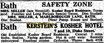 Nathan Kerstein kept a kosher hotel at 7 and 10 Duke Street, Bath, from 1927 until his death in the 1940s. He hosted regular