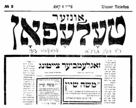 Front page of Unzer Telefon [Our Telephone] October 1913