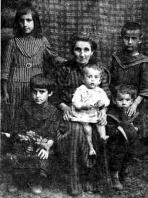 | Grandmother Faygl Meckel with her five grandchildren |