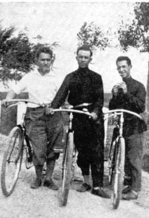 | A ‘Troika’ of cyclists (from the left): P. Savitzky, M. Shimonowicz, M. Jasinowsky |