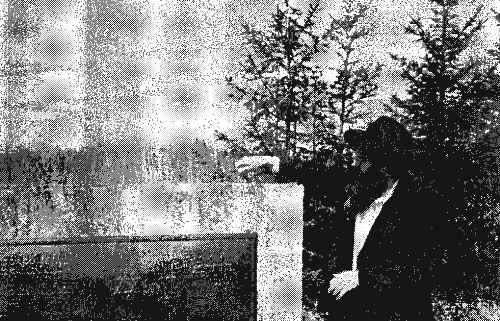 That's the memorial for the mass grave, the place the Jews were killed in Abel. They took the Jews about two miles behind the shtetl and killed them. I don't know if they buried them alive or shot them first. As they were sent to the grave, they were made to take off their clothes. The farmers stood behind and waited for a share of the clothes on their bodies.