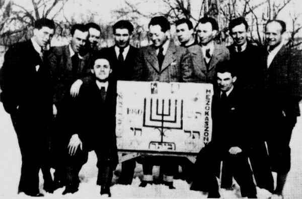 This organization became known as ‘DrorHechaluz Hatzair’ (Freedom  Young Pioneers). It was formed in Kaszony in 1934 by the writer of this book who became attached to this movement in Munkacs. The local organizer was Karcsi Lebovics. The club's ‘moadon’ was in his parents' home and workplace. Dror's membership came from the poorest nonorthodox young people of Kaszony. Many of them were too poor to attend high school or even to have an opportunity to learn a trade. This group grew slowly to about thirty members. They met frequently to study Hebrew and to read together Jewish literature supplied to them by their headquarters. After 1939, when the movement developed industrial ‘hachsharas’ in Budapest, most of them left home to learn a trade there. Many of them survived the Holocaust in Budapest.