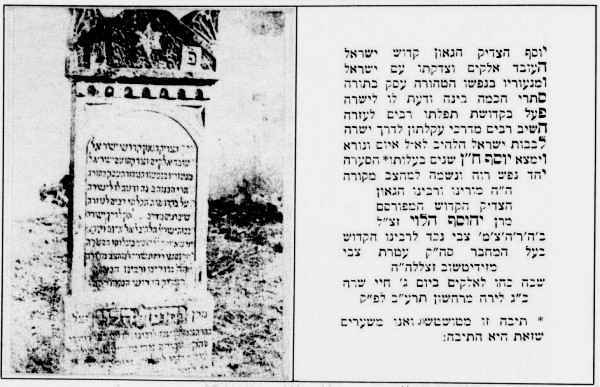 | The tombstone of Rabbi Yehosaf (Jodeph) Rottenberg. He died in 1911 |
