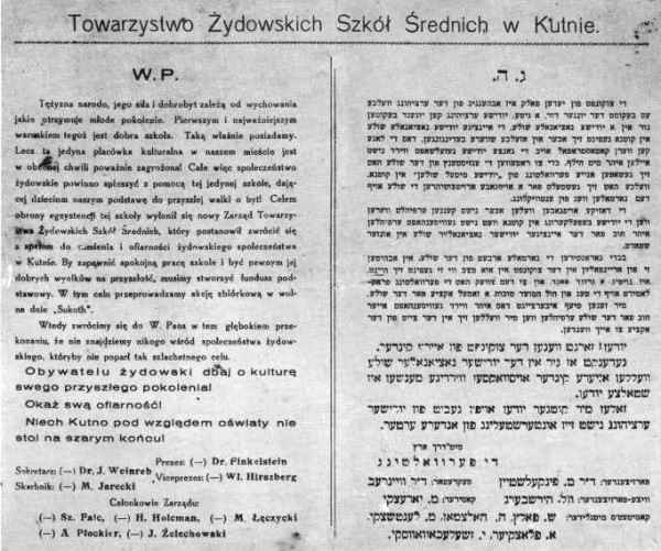 However, these tasks can't be fulfilled if the Jewish population in Kutno does not conscientiously fulfill its obligation for the only Jewish national school in our city.