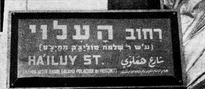 | Street sign in Jerusalem. Ha'Iluy Street, named after R' Shlomo Polachek from Maytchet |
