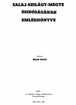 Sefer yehude Salj-Szilagy; toldotehem, kehilotehem, mishpehotehem