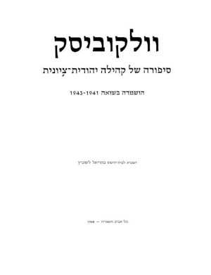The Destruction of Volkovysk - Published by the Committee of Volkovysk Émigrés, Tel-Aviv 1946