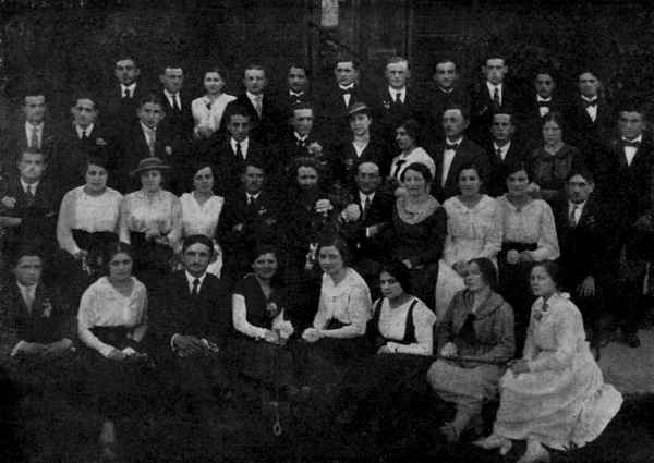 * Note: According to Frida Cielak (Mexico City, Mexico), in the top row, the 5th person in from the right, Moishe Markuschamer, is standing sideways and looking at his then wife-to-be, Ethel Saperstein.