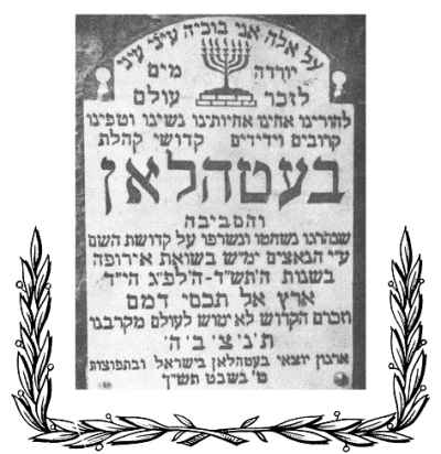 Memorial monument to the martrys of Bethlen and surroundings in the Holocaust Cellar in Jerusalem  |