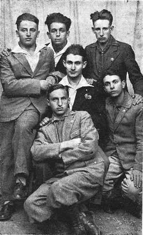 Seated: Yakov Bloch (Tel-Aviv), A. Aloni zl (Tel-Aviv), and Arye-Lyubka (died in the Holocaust) |