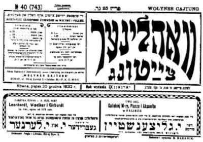 And so we see Shrira as the founder and editor of the Idische Vach newspaper and later as the literary editor of Vachliner Leben in Rovno [=Rivne] during the two years until he immigrated to Israel.