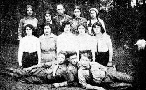 Jewish Folk Shul 1922 Seated in the middle: The Board of Directors Khaim Gilinsky, Nekhemiah Brumberg, the teacher, Bere Gilinsky, Dovid Eynhorn From right: ____, _____, _____, Shaul Kuritsky, ___, ____, ____, Velvl Kril, Moishe Korb, Avrom Soloveychik, ____, ____, Shmuel Dubinsky, Ruven Brumberg, Dovid Postavsky, ____, Yisroel Gilinsky, Khaninya Bitshunsky, ___, ___, Nosn Shapiro, Rivke Gilinsky, Rokhl Eynhorn, ___, ___, Binyomin Aron, ____, Moishe Eynhorn, ____, ____, ____, ___, Yitzkhok Gilinsky, ___, ___, ___, ___, ___, Rivke Dubinsky, ___, Etke Gilinsky, ___, ___, ___, Rayzl Gilinsky, ____, ___, ____, Feyge Elperin, Beyle Soloveychik, ___, ___, ____ |