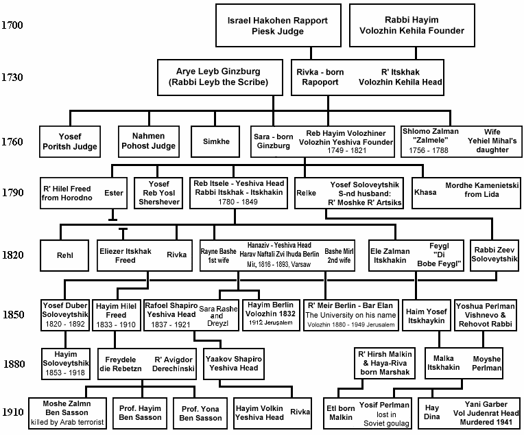 Descendants of Rabbi Chaim of Volozhin and his wife Sara