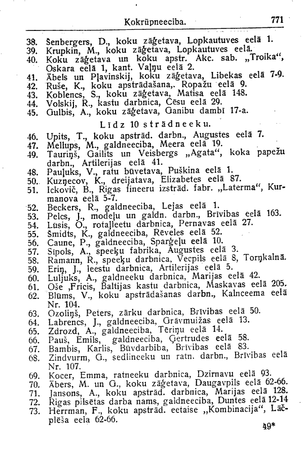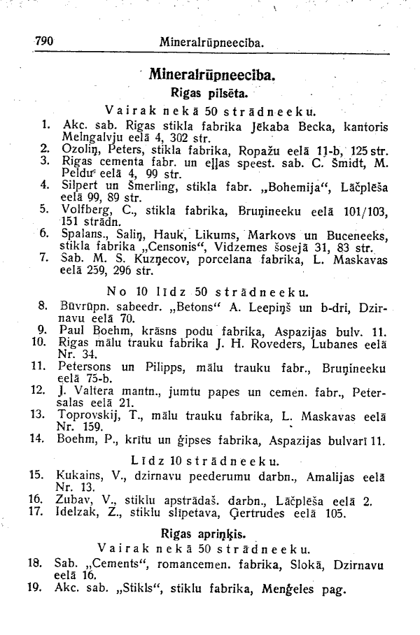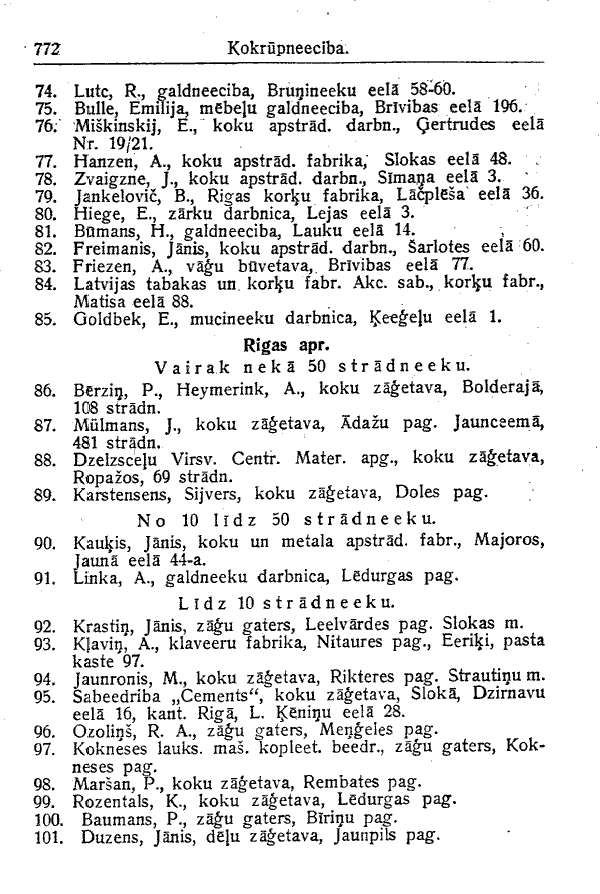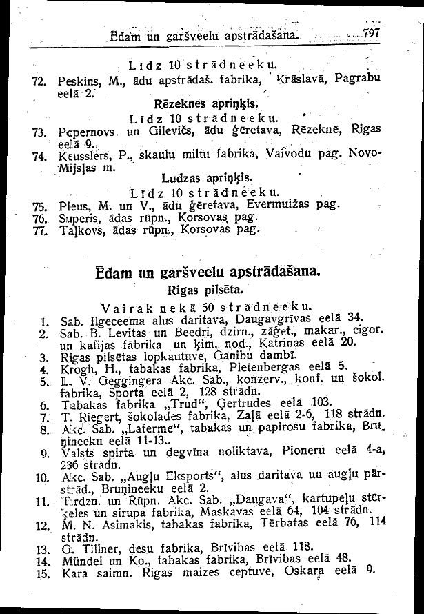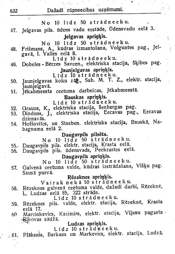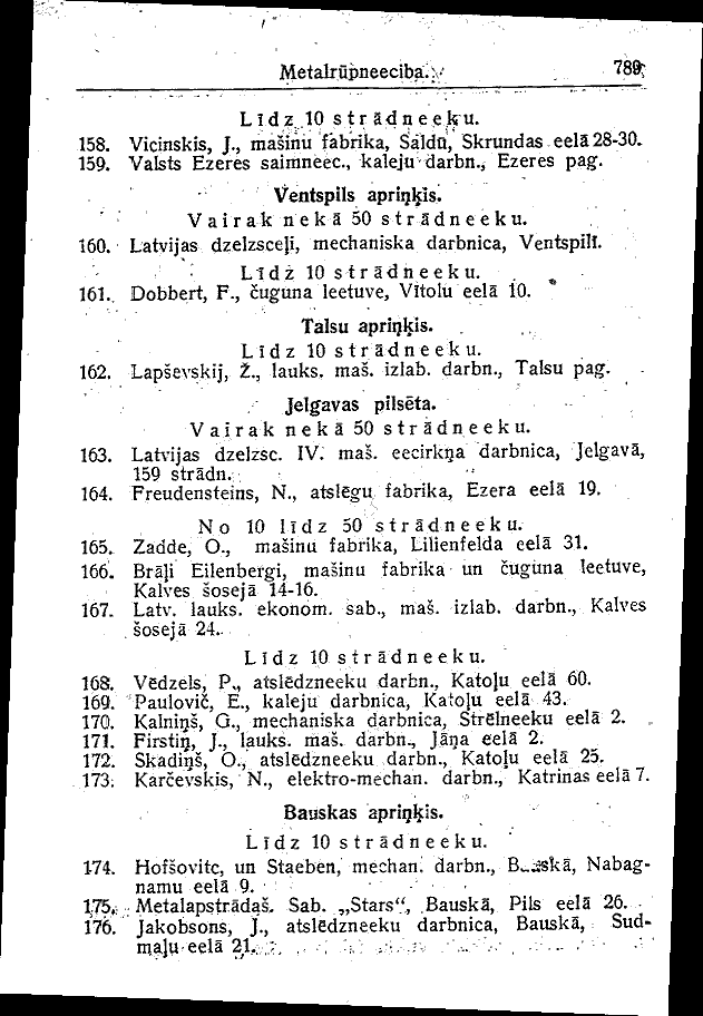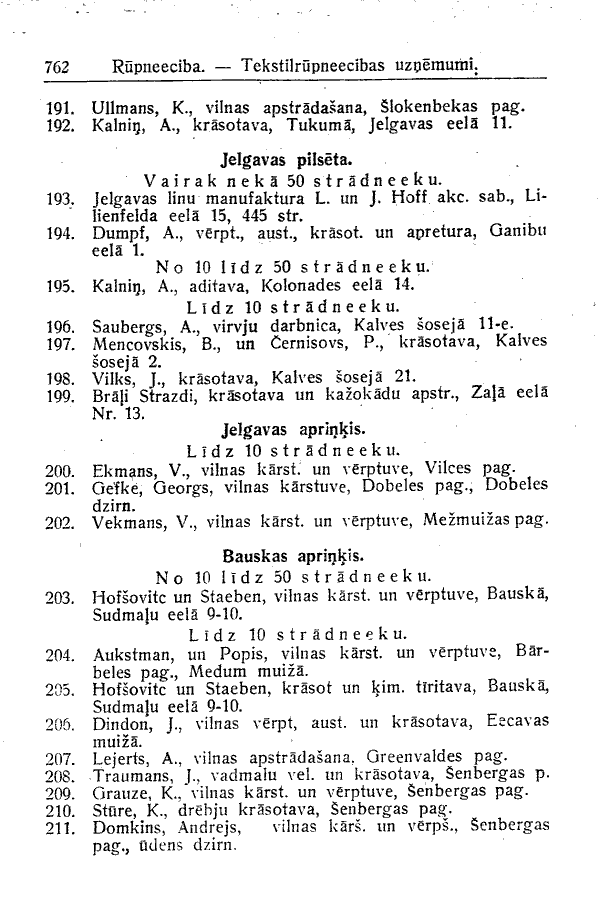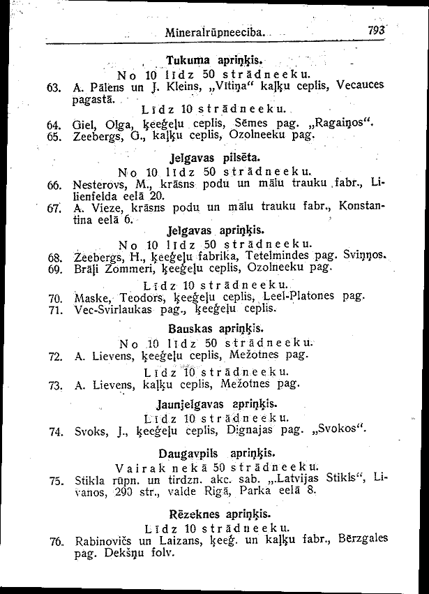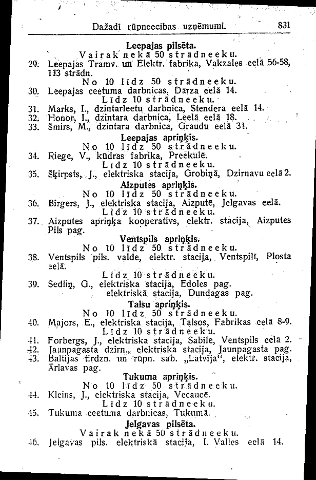 LATVIAN ENGLISH aprinkis district eela or iela street lidz up to pilseta city rupneeciba industry stradneeku workers uznemumi enterprises vairak neka more than