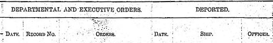 | Immigrants deported by the BSI, or ordered deported after an appeal, should have the ship name and date of their deportation. In some cases, the columns contain only the date of deportation and the steamship company responsible. | |