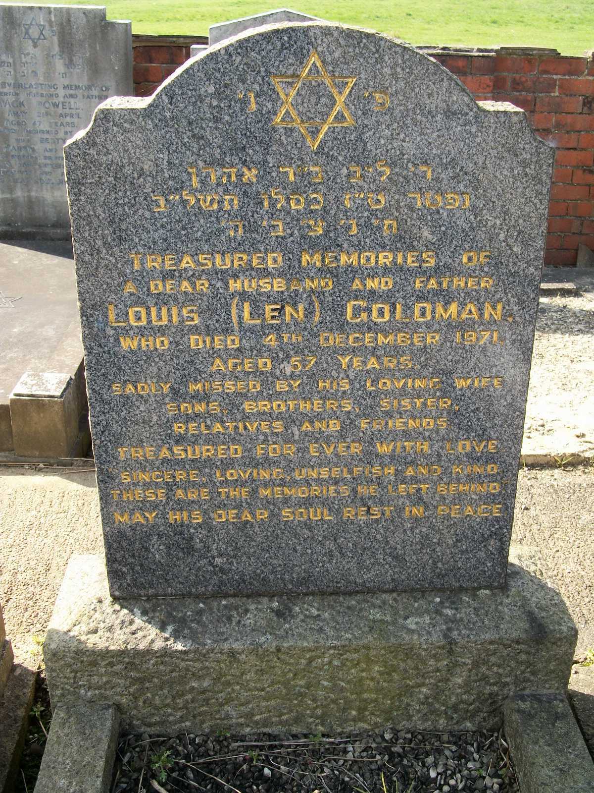 This website is owned by JewishGen and the Jewish Genealogical Society of Great Britain. All material found herein is owned by or licensed to us. You may view, download, and print material from this site only for your own personal use. You may not post material from this site on another website without our consent. You may not transmit or distribute material from this website to others. You may not use this website or information found at this site for any commercial purpose.