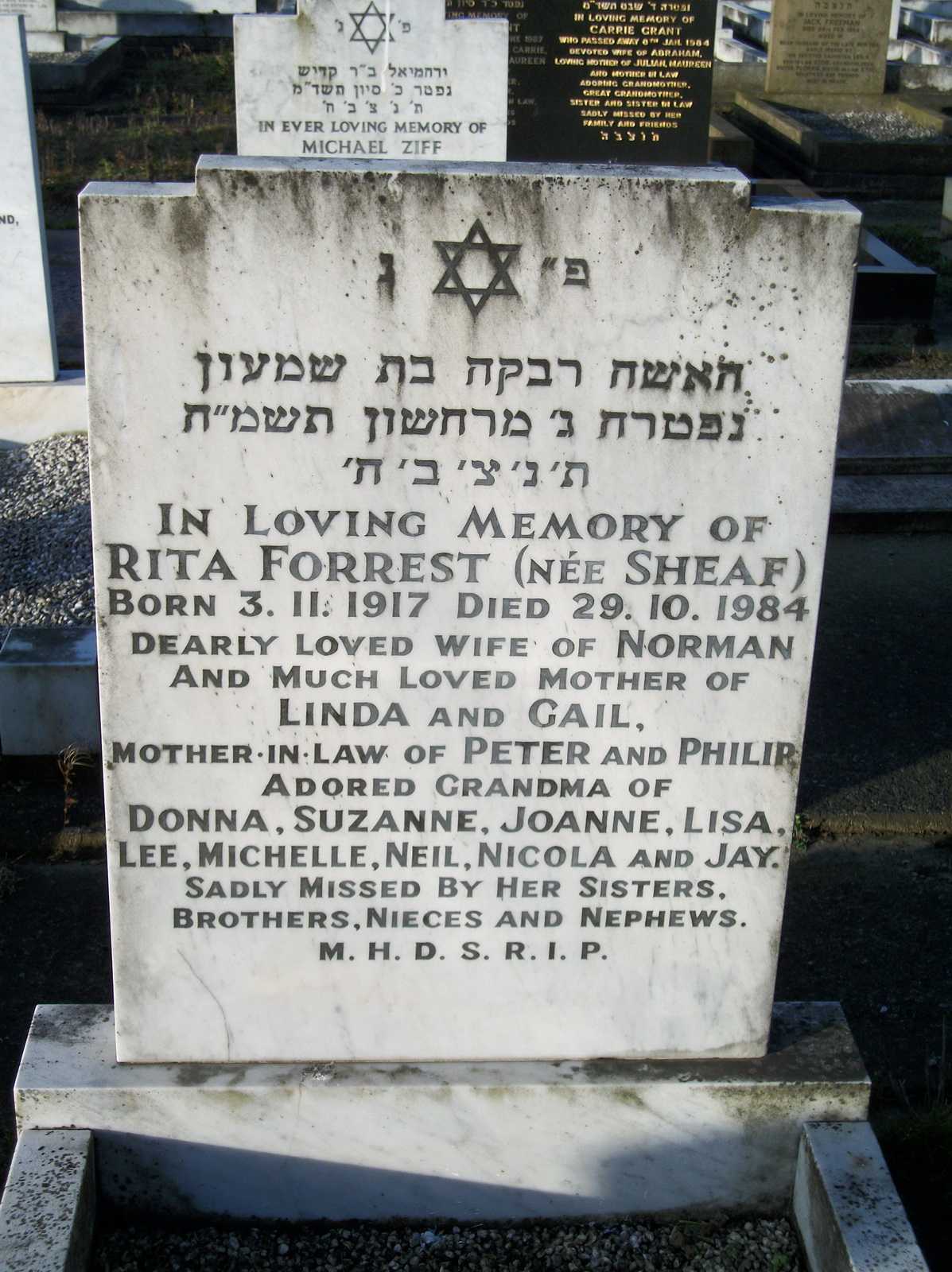 Notes :   nee Sheaf