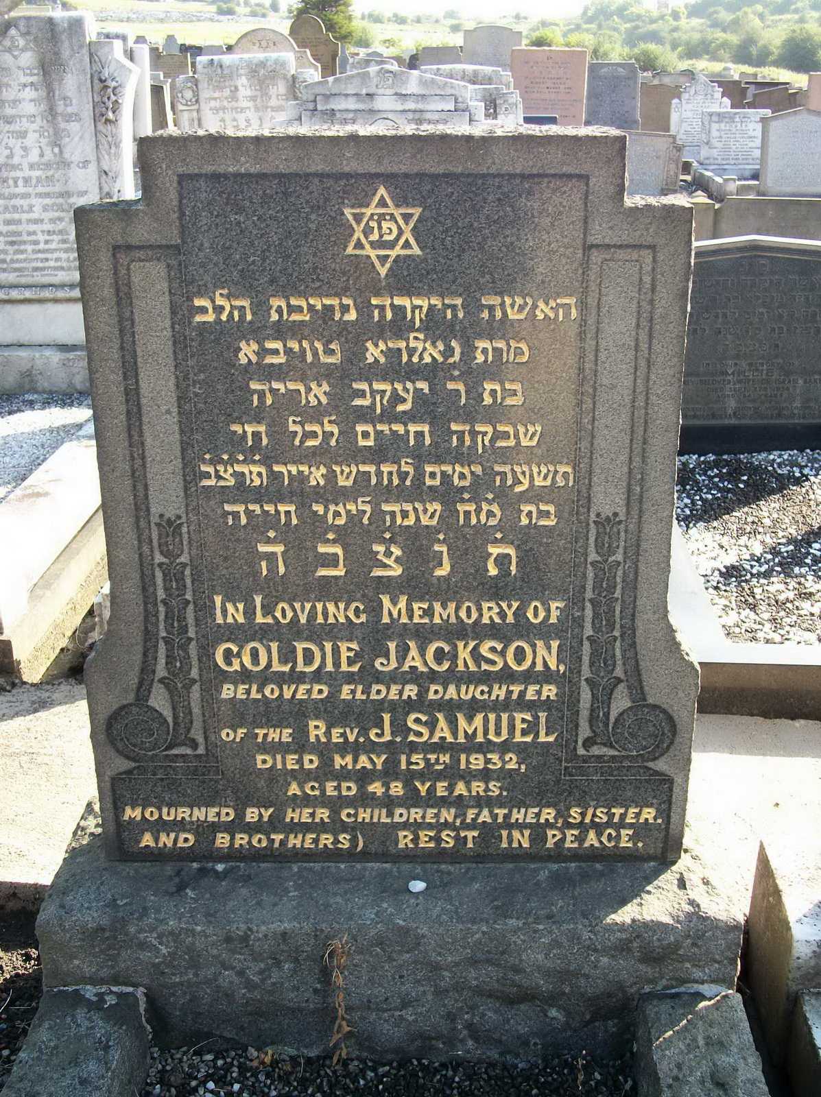This website is owned by JewishGen and the Jewish Genealogical Society of Great Britain. All material found herein is owned by or licensed to us. You may view, download, and print material from this site only for your own personal use. You may not post material from this site on another website without our consent. You may not transmit or distribute material from this website to others. You may not use this website or information found at this site for any commercial purpose.
