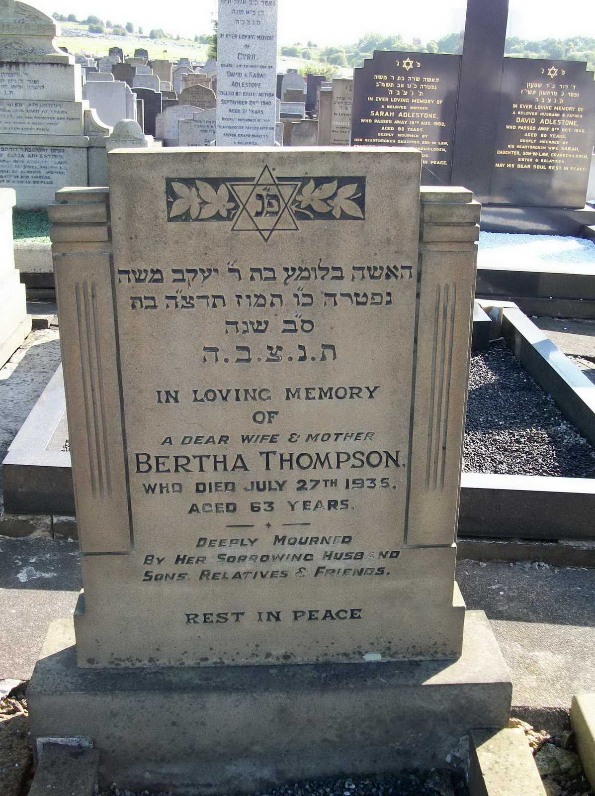 This website is owned by JewishGen and the Jewish Genealogical Society of Great Britain. All material found herein is owned by or licensed to us. You may view, download, and print material from this site only for your own personal use. You may not post material from this site on another website without our consent. You may not transmit or distribute material from this website to others. You may not use this website or information found at this site for any commercial purpose.