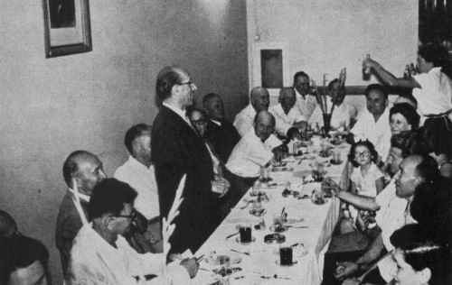 | Hayyim Levanon (former Mayor of Tel-Aviv) speaking at a reception for the guests Eliezer and Inga Stempel of Argentina and Isaiah Stempel of Jamaica |