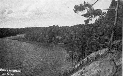 This lake is situated in the northeast of the city. Its length from west to east is about 5.5 viorsts and its width between 300 yards and 800 yards,* its area 600 millimeters, or 3.8 square viorsts, and its depth up to 70 feet. At its western end, it merges with Lake Necko while its eastern boundary merges with Lake Studzieniczne and all of it is included as part of the Augustow Canal system. The water is soft, and colored white. The fish present in the lake are: carp, pike, akunas, avduma, whitefish, and more.