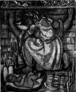 Here I see before me the little house of the Boiberke ghetto (the little house in the city where I was born and grew up) and in the yellow light of the dim cool oil lamp, there is the reflection of emaciated faces, and in a corner stands my dear mother (may she rest in peace) and with a shaking hand she cuts bread, everybody's eyes are riveted to the round brown little loaf. The mother, the eternal good mother, may she rest in peace, she would give everything away, she would not begrudge, but one must divide small little pieces, and hide the rest for later or tomorrow, and the tomorrow never came anymore. My dear sweet mother, it seems I have just spoken with you. It seems to me you wanted to tell me something unfinished, they tore you away, so brutal, so murderous.