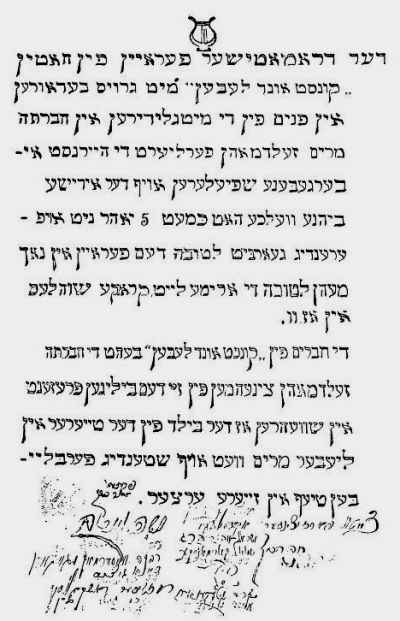 | The dramatic society of Khotyn, Art and Life, honors our member, Miriam Zeldman, as a serious and devoted actor on the Yiddish stage,