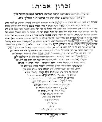 To the memory of Reb Nathan zl, the son of Rabbi Yosef Zeev, may God avenge him, and to my mother and teacher, Esther Chaya, may God avenge her, and to my dear brother, the child Mordechai, may God avenge him, who were killed for Kiddush Hashem.