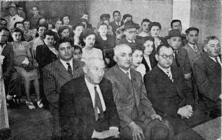 Israel Stolarsky, Irving Novik, Yitzhak Farber Standing: Eli Levin, Aba Blok, Florence Friedman, Zaydl Kaplan, Mayer Bloch, Ester Schneiderman, Jankel Kirschner |