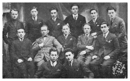 J.S.K. (Jidishe Sport Klub) [Jewish Sports Club] was founded as an unaffiliated cultural center which welcomed the participation of members from all Jewish factions. The founders and organizers were the Podoljak brothers, the Lichtensztejn brothers, the Manperl brothers, Saposznikow[3], Avraham Fiterman, Mordechai and Gabriel Szapira, Mejer Ejdelbaum and many others.