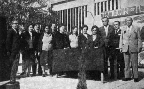 Y. M. Nordman (first on the right) on the memorial day for the Ostroh community at the Aliyot school in Ramat-Gan |